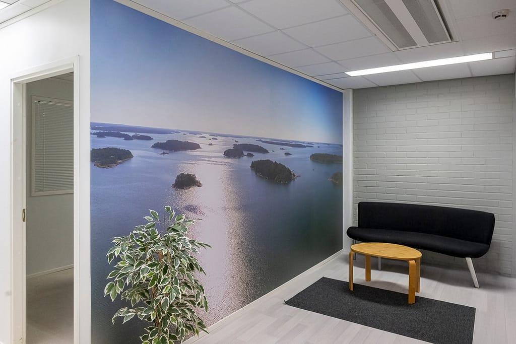 Projekti voi edetä niin, että esität toiveesi esimerkiksi aiheesta, värimaailmasta tai koosta – niiden pohjalta kokoamme sinulle valikoiman kuvia ja materiaalivaihtoehtoja.